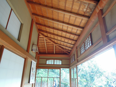 この建物は、昭和10年に熱海市内に別荘として建築。昭和19年から亡くなる昭和27年まで中山晋平さんが居住。つまり戦禍を免れた物件ですね。昭和37年から日本ビクターが管理し公開。平成2年には熱海市に譲渡し、その際、熱海梅園に移築したのだそうなんですよ。