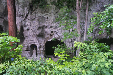 でね、あじさいしか知らなかったんだけど「明月院やぐら(羅漢洞)」が壮観でした。鎌倉最大のやぐらなんだって。鬱蒼としてて目を奪われる。暗くて不気味でとても面白かった。他の季節にゆっくり来てもいいかも。今度は天気の良い時だね、なんてさ。