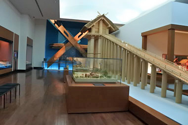 有り難い「宇豆柱(うづばしら)」は撮り忘れた。ちゃんと凄い発掘だったんだよとかリキ入れて説明してくれたんだけど、いきなりだったし、まだ気持ちが盛り上がってなかったのよ。ともかく最初は落ち着いて見てました。結構イロイロあるなぁという感じでね。そうだ、陳列のセンスが良いじゃん。と気づく。宇治の平等院鳳凰堂の鳳翔館も素晴らしい陳列状態だったのですよ。さすがだなぁ日本芸術の粋が結集されとると感嘆だったのですが、負けてません。とてもとても素晴らしい!