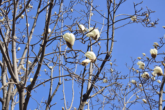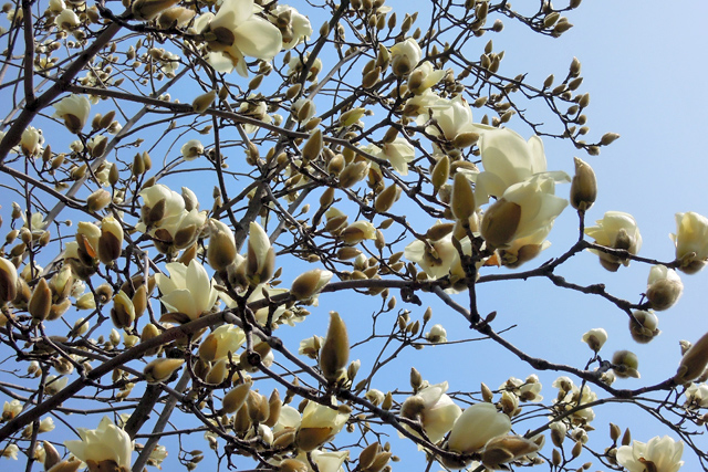 木蓮の樹はね、自宅から豊橋駅に徒歩で向かう通り道に有りまして、毎日じっくりと眺めると云うより、通りすがりに「元気でやってる?」「おお!いいじゃん!素敵じゃん!」と励まし合ってきた間柄なんだよね。